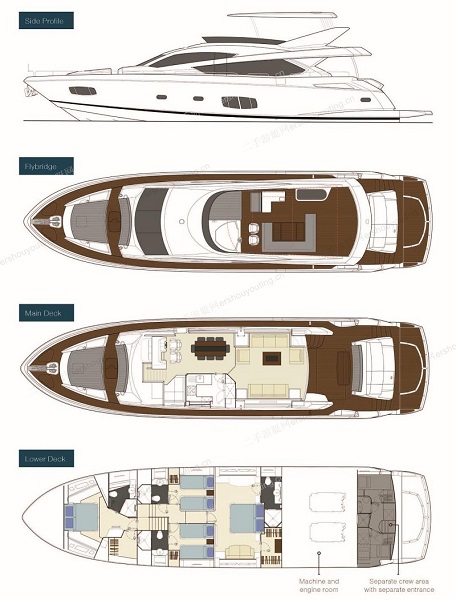 | 游艇产地:英国 | 出厂年份:2010年 | 游艇类型:飞桥游艇 | 发 动 机:MTU 1620匹两台 | 使用时间:950小时 |
