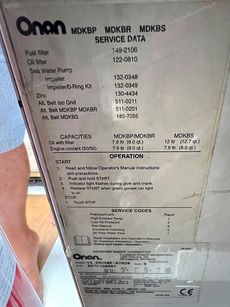 发电机:Onan 5Kw 220v/50hz